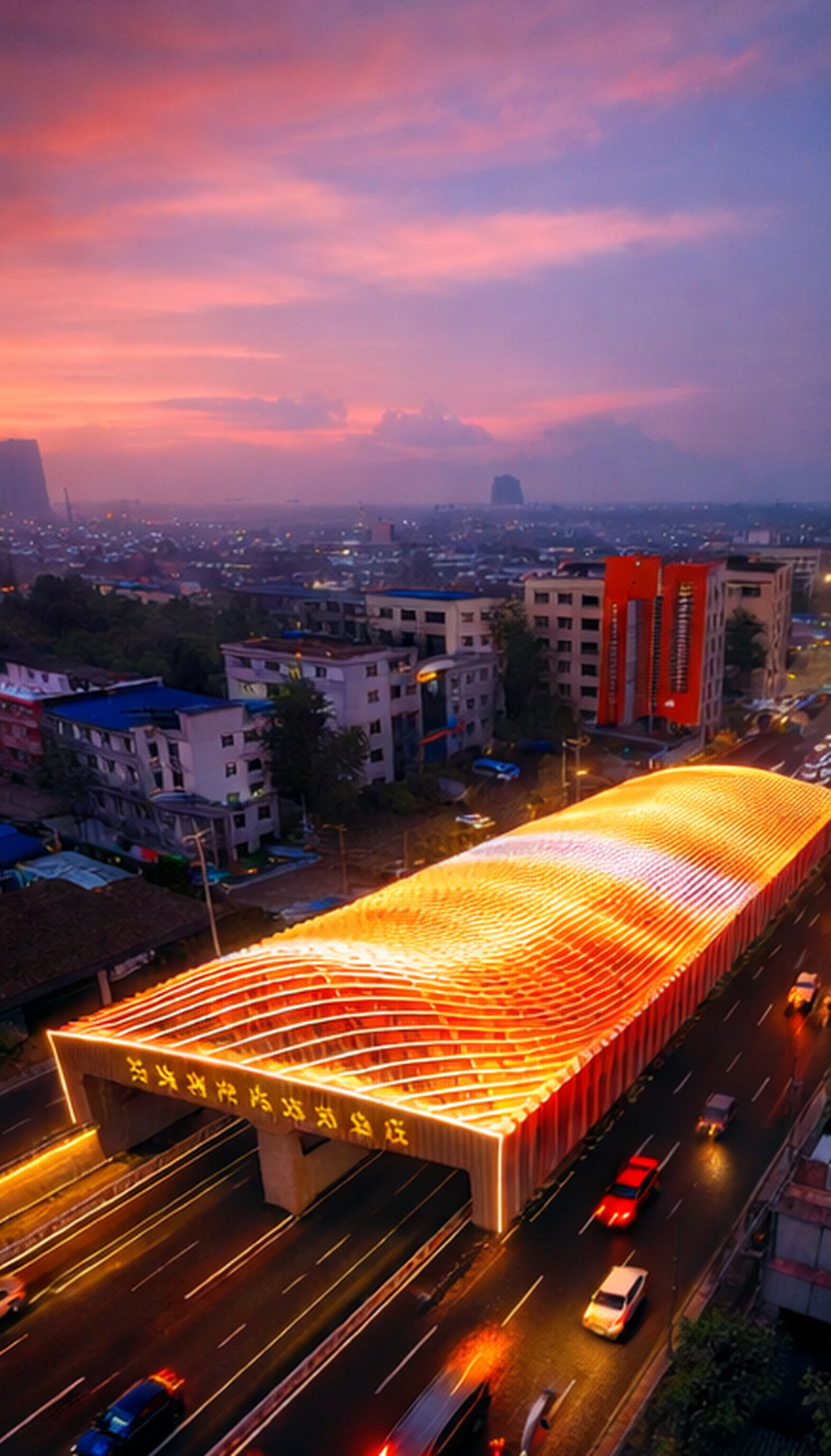 A mesh LED display is a lightweight, open-structure digital display system designed to mount across building exteriors and architectural features. Because the pixels are spaced apart, the display can look “see-through” from many angles while still delivering bold visuals from viewing distances. Therefore, it’s ideal for media facades, canopies, and large-scale outdoor branding.